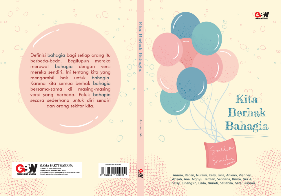 Judul : Kita Berhak untuk Bahagia Penulis: Annisa ISBN: 978-623-99223-2-0 Kertas: HVS 57 Gram Ukuran: 14 x 20 cm / Doff